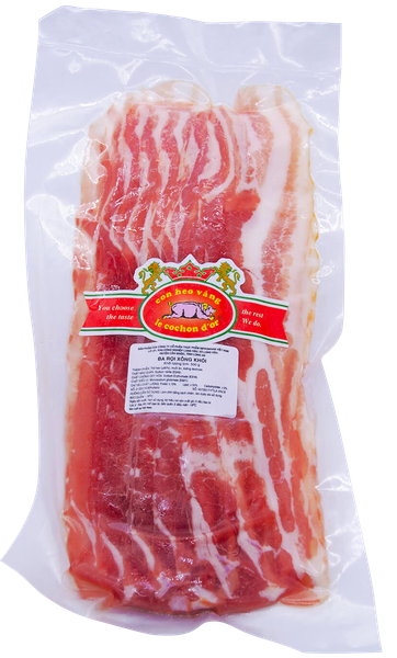 Ba rọi xông khói (Bacon) 200g làm từ phần ba rọi ngon nhất của con heo với những thớ thịt mỡ và thịt nạc xen kẽ . Sau quá trình tẩm ướp gia vị , xông khói 30% làm thịt săn, chắc, tạo nên hương vị thơm ngon và béo ngậy khi thưởng thức.