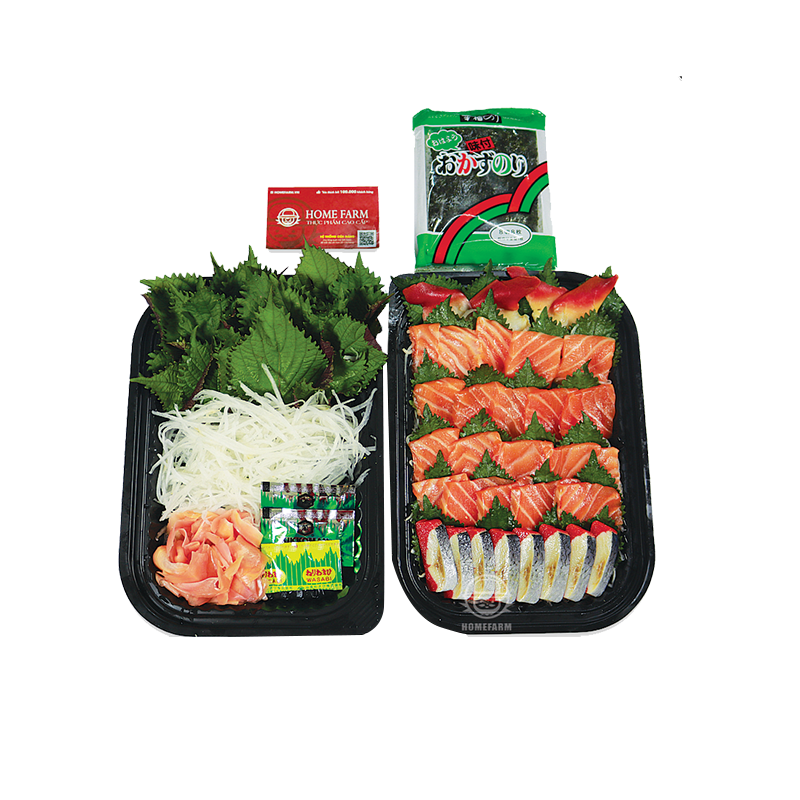 Một set Sashimi đỏ của Homefarm đủ dùng cho từ 2 đến 3 người, bao gồm: